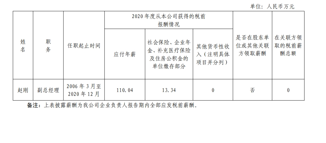 中國標準科技集團有限公司企業負責人2020年度薪酬情況