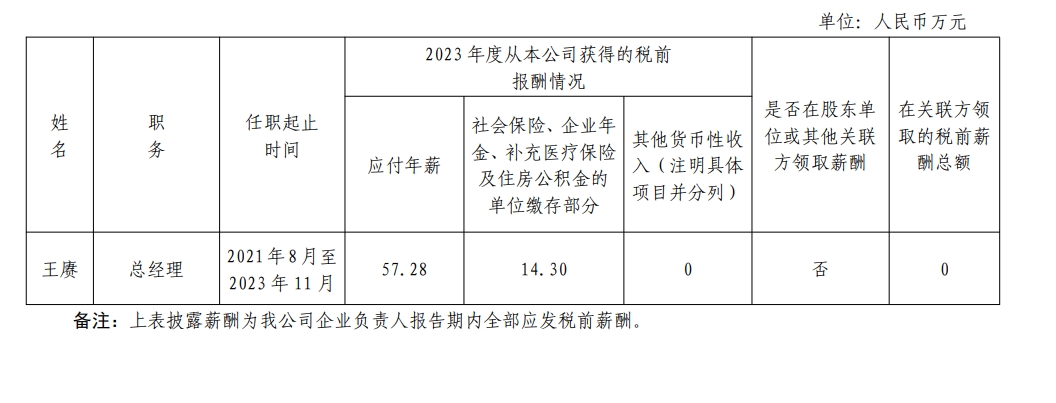 中國標準科技集團有限公司企業負責人2023年度薪酬情況