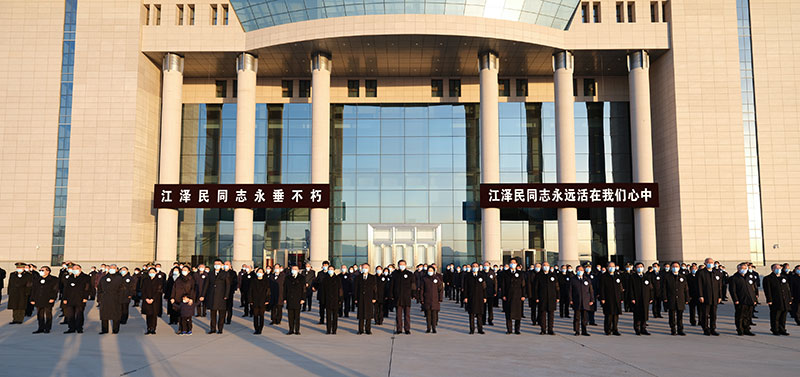北京西郊機(jī)場(chǎng)國(guó)旗半垂,氣氛莊嚴(yán)肅穆,黑底白字橫幅上寫著:“江澤民同志永垂不朽”“江澤民同志永遠(yuǎn)活在我們心中”。習(xí)近平和夫人彭麗媛等胸佩白花、臂戴黑紗,神情凝重地在停機(jī)坪肅立。