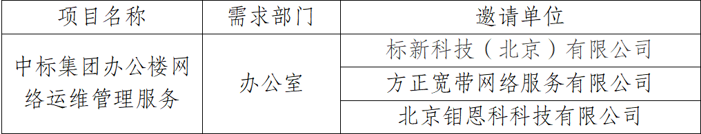 按照《中國標準科技集團有限公司采購工作管理辦法(試行)》要求,現對中標集團辦公樓網絡運維管理服務項目競爭性談判邀請單位公示。