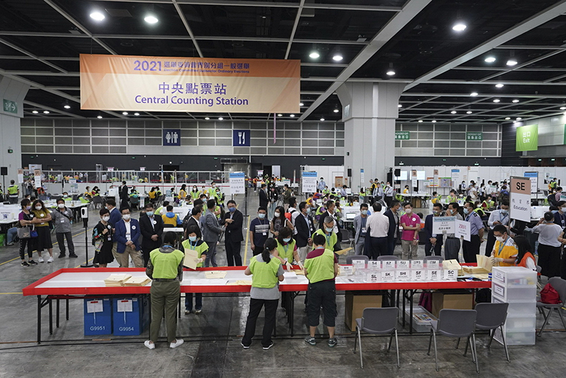 2021年香港特別行政區選舉委員會界別分組一般選舉舉行。這是工作人員開始點票(2021年9月19日攝)。新華社記者 呂小煒 攝